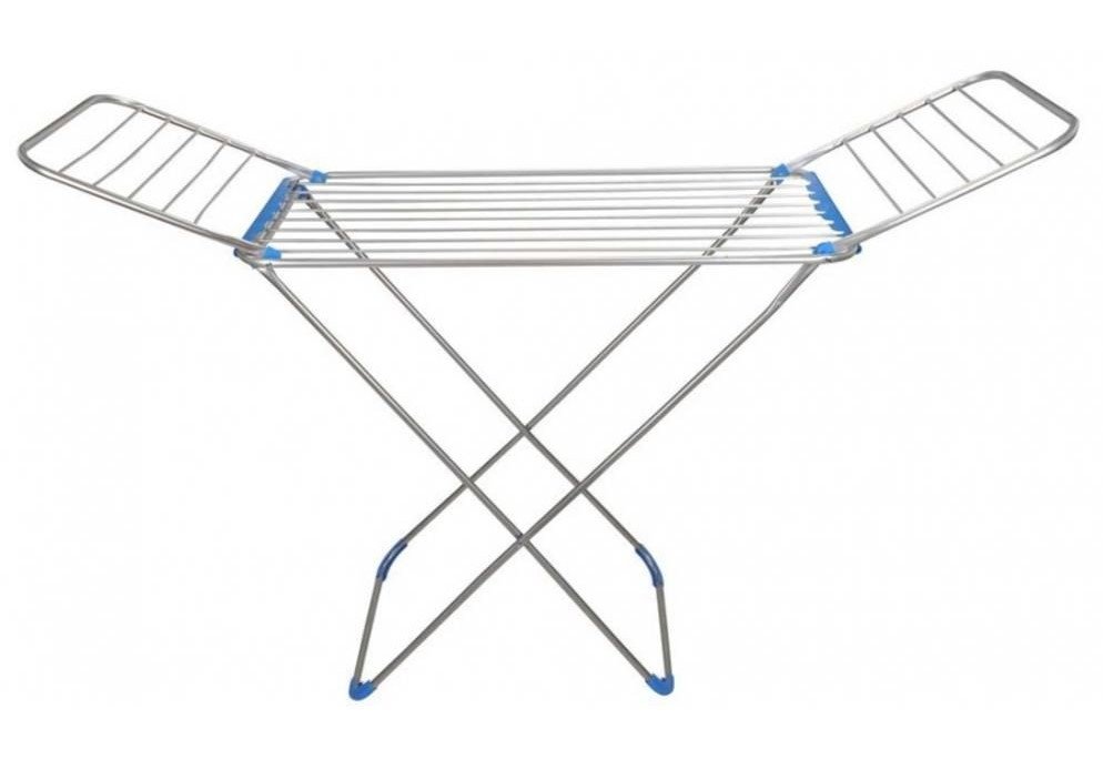 Απλώστρα ρούχων κατασκευασμένη από αλουμίνιο πάχους 16mm, στιβαρή και σταθερή. Διαθέτει 2 πτυσσόμενες σχάρες και προσφέρει μέγιστο μήκος απλώματος 18 μέτρα. Είναι ελαφριά για εύκολη μεταφορά και πτυσσόμενη για εύκολη αποθήκευση.